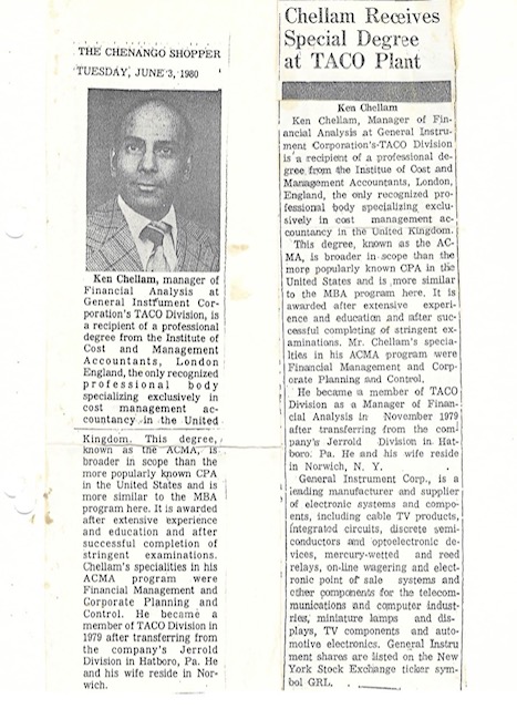 Notes for K.A.CHELLAM: Married to Nalina. One daughter called Sara10 married to Grant Baker